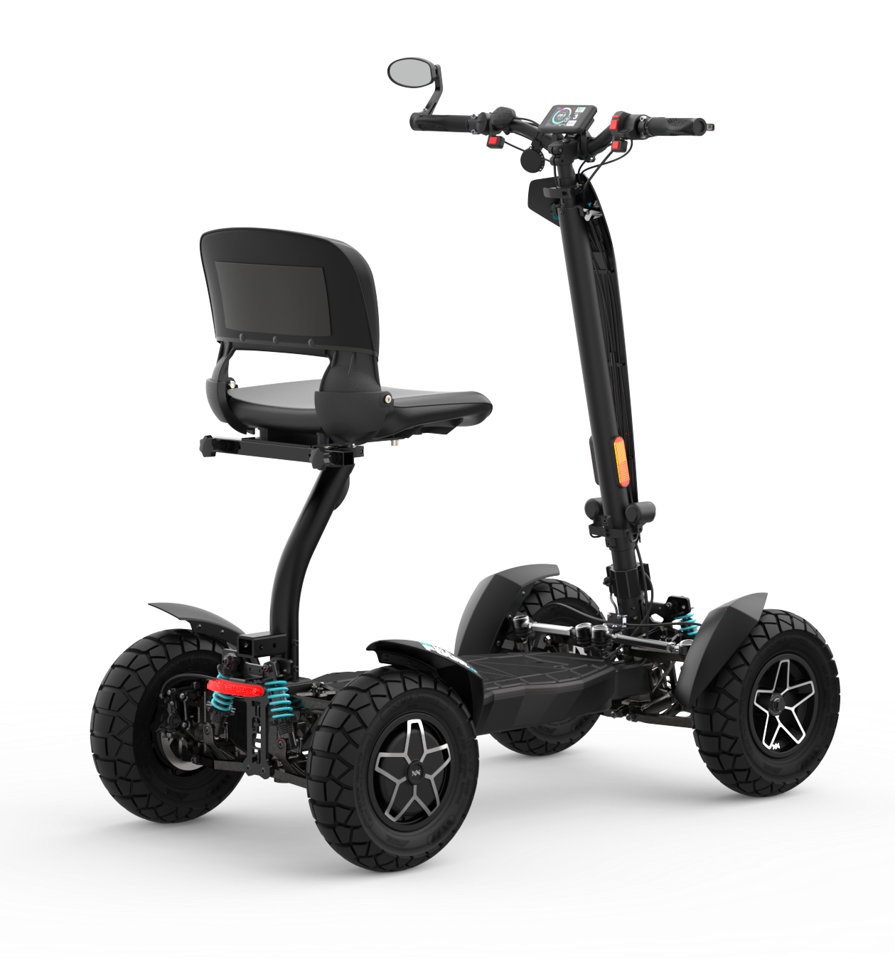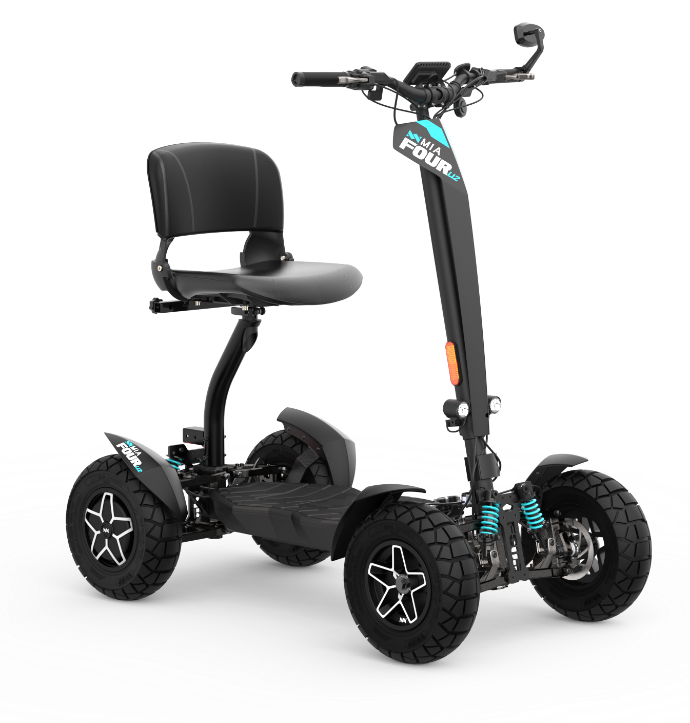 Compared to other models from the MIA Dynamics brand, the MIA FOUR X2 represents an ideal balance between performance, range, and price. Compared to the more powerful MIA FOUR X4 (4x4), it offers lower weight, simpler maintenance, and more efficient energy consumption while maintaining high performance and speed. The X4 model is designed primarily for extreme terrain, while the X2 is a more versatile choice for both urban use and recreational riding. Compared to smaller or less powerful models in the lineup, the X2 provides significantly higher stability, performance, and load capacity. It is the ideal choice for riders who want more than a standard scooter but do not require full 4x4 drive. The MIA FOUR X2 is the golden middle ground—powerful, safe, and practical.