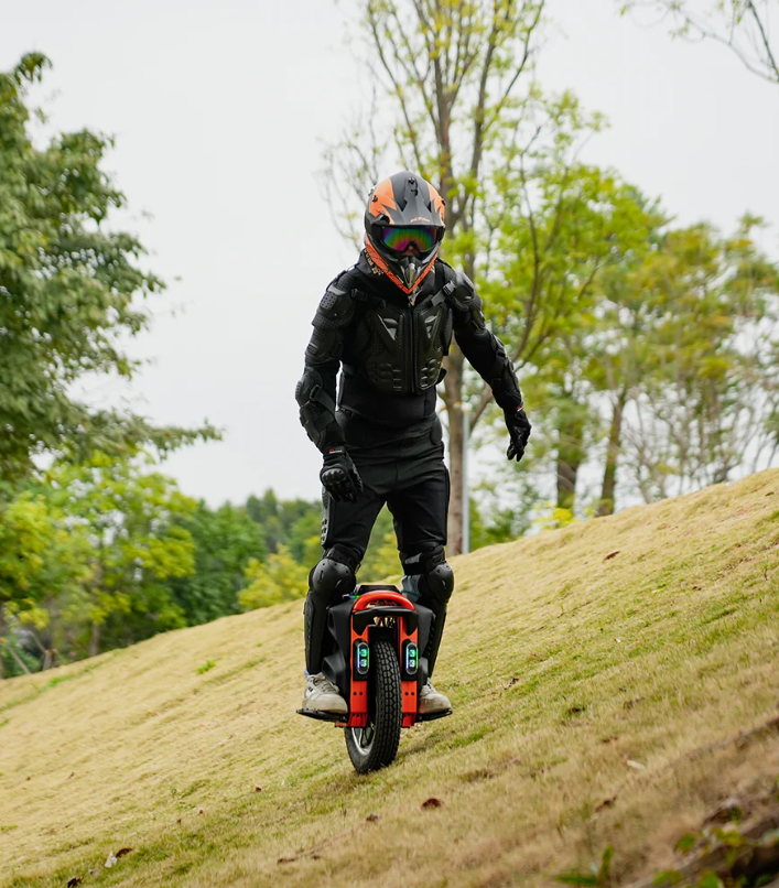 With the S16 Pro, safety plays a key role. The automatically adjustable front light, rear brake light, and integrated turn indicators ensure that the rider is always visible. The 88 mm suspension travel absorbs shocks, improves stability, and enhances comfort on uneven roads. The intelligent KingSong control software automatically regulates torque when reaching the maximum climbing angle of 48°, preventing motor overload. The KingSong App provides real-time data on motor temperature, battery voltage, and system diagnostics, ensuring full control over your vehicle’s performance and safety.